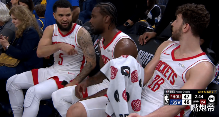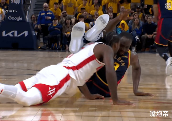 这一系列操作真的是很离谱,如果不是火箭这边范弗里特拽着伊森没有扩大冲突,双方可能真干起来了。这当时这个场面真的非常夸张,又是为了抢一次地板球,格林和伊森争到了一块,因为他被伊森抢断了面子上挂不住,于是有了一套小连招。
